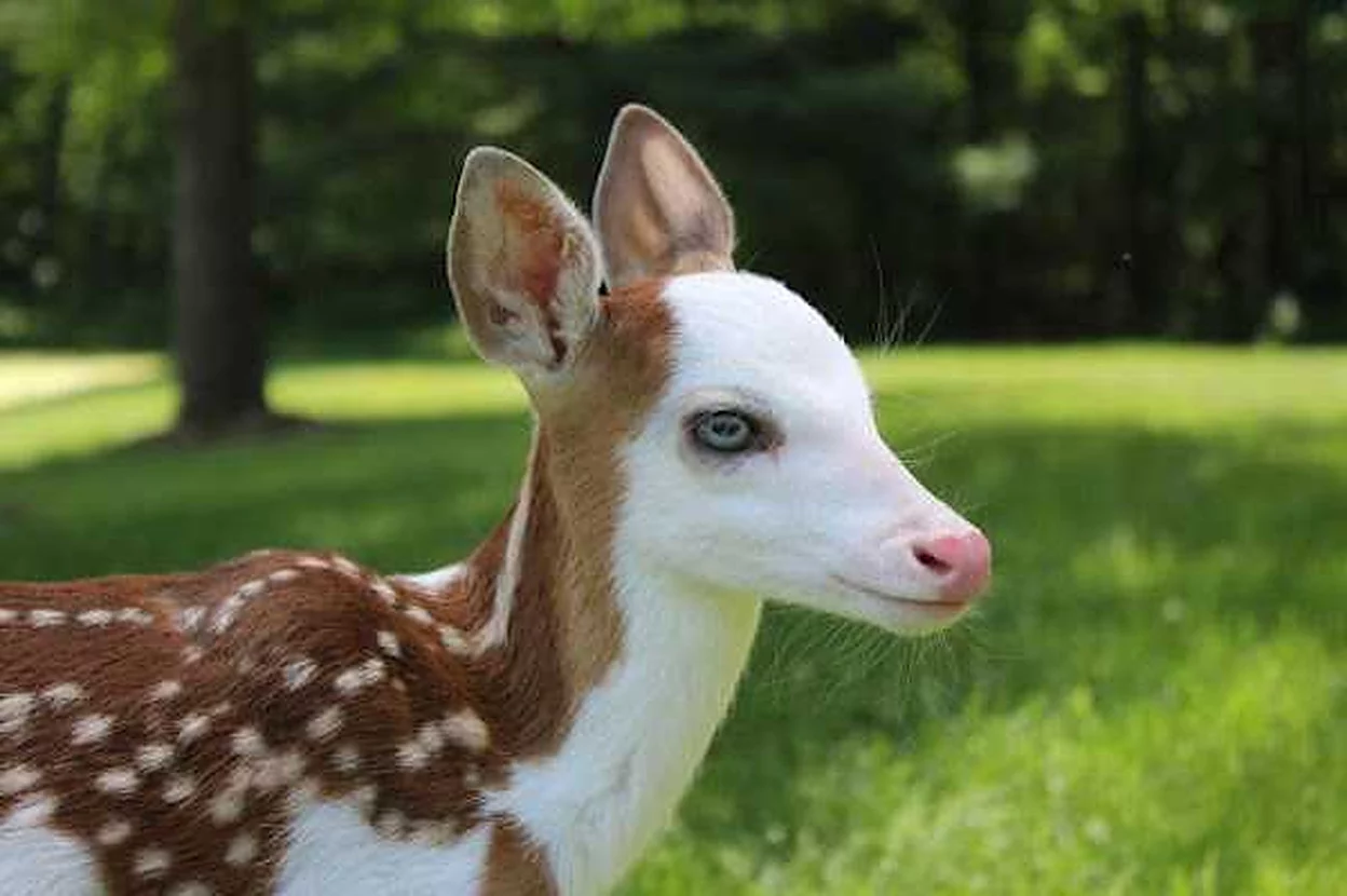 Un cerb rar cu fața albă după ce a fost respins de mama sa după naștere și-a găsit o casă…