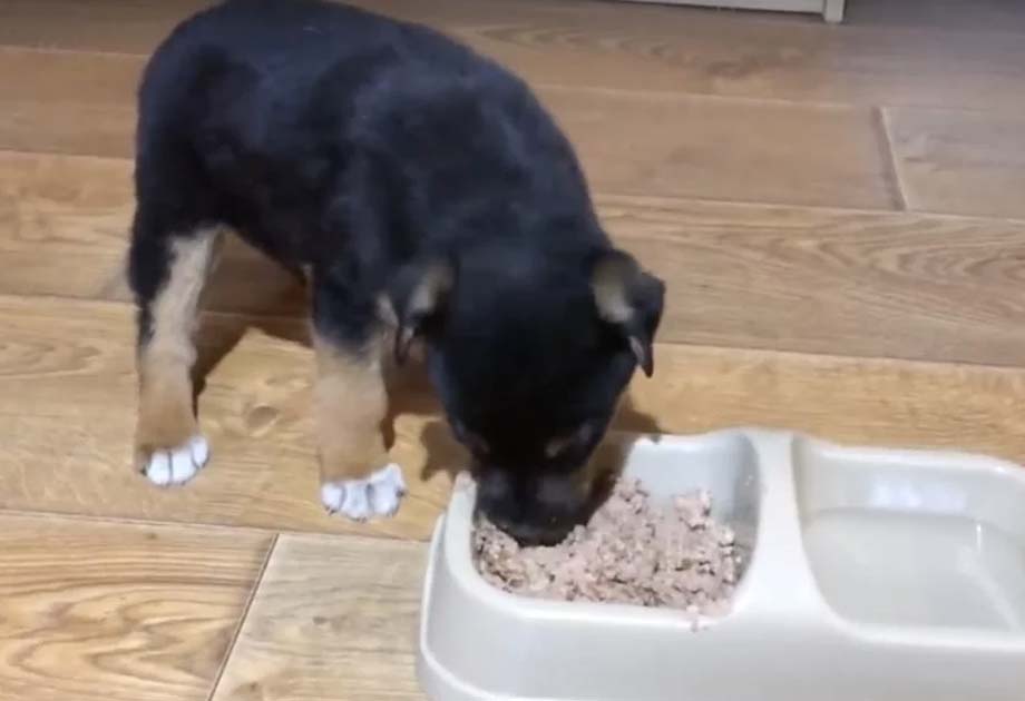 Căţeluşul plângea de frică şi de foame, fiind observat în apropierea unor tomberoane de gunoi de către o persoană grijulie care s-a înduioşat pe loc de scena la care era martor.