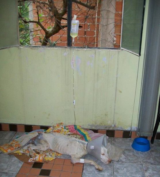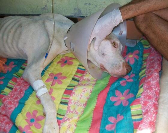 Dacă nu era găsit în acel moment, pitbullul murea. Din cauza malnutriţiei, rănilor deschise şi a infecţiei, câinele nu mai avea mai mult de 24 de ore până la moarte.