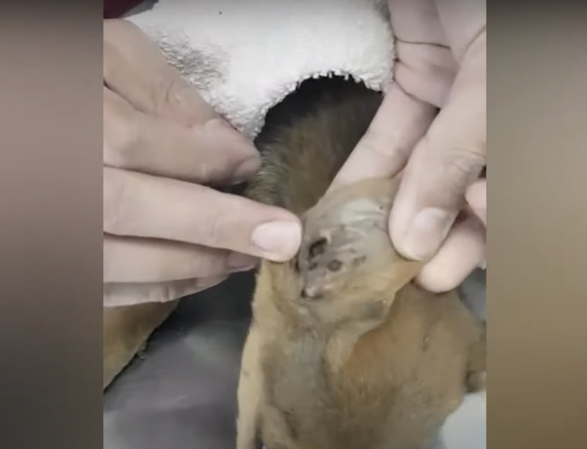 Pentru veterinar era foarte important să elimine tot lichidul din burţile lor umflate, dar aceasta este o procedură complicată. Unul dintre tehnicienii veterinari i-a ţinut de lăbuţe tot timpul pentru a-i încuraja.