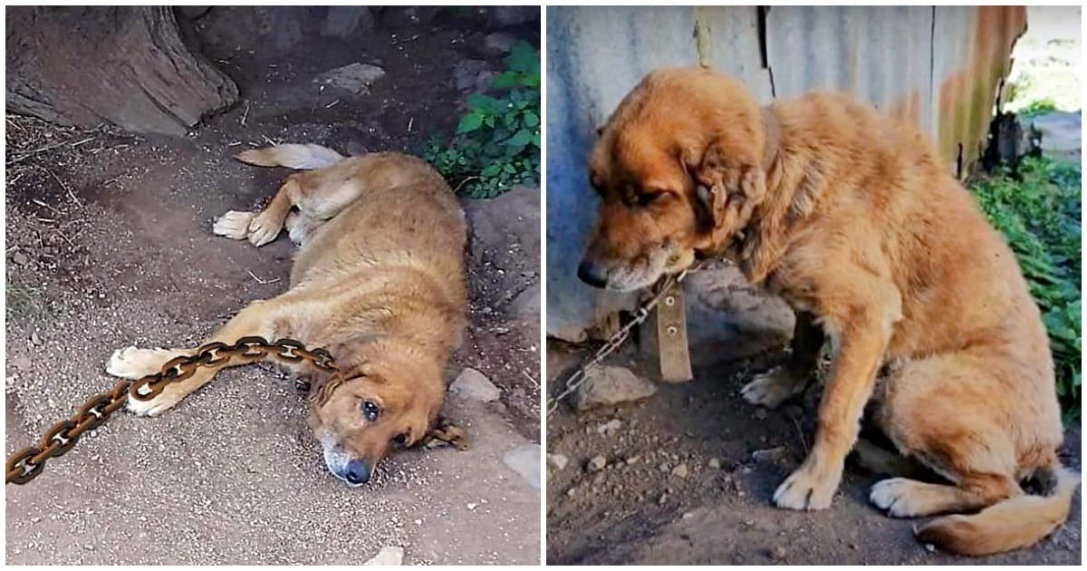 Când echipa de salvare a sosit pentru a-i scoate lanţul şi a-l elibera, el şi-a exprimat recunoştinţa dând din coadă, plin de fericire şi uşurare.