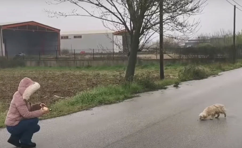 Frica față de oameni a fost învinsă de foamea prea mare! Povestea tristă a unui cățel abandonat.
