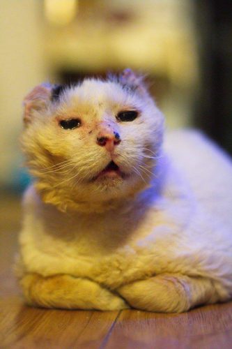 ÎNAINTE DUPĂVă amintim că Tiger a fost plin de răni dureroase, plin de râie, avea ochii, urechile şi nasul afectate vizibil de condițiile vitrege ale naturii, flamand şi, în cele din urmă, secătuit de puteri. După o perioadă de tratament îndelungat, pisoiul a dat dovadă de o „rezistenţă excepţională”, fiind un „luptător magnific”. Salvatorii se bucură de orice progres făcut de el și mulțumește celor care s-au implicat în îngrijirea lui.Motan a fost salvat de o asociație ce reprezintă iubirea față de animale. Ei au postat pe rețeaua de socializare povestea uimitoare a vieții lui.”După jumătate din durata normală a vieţii lui, Tiger a fost salvat de pe un câmp unde se descurcă cum putea, vană pentru a se hrăni şi se adăpostea printre gunoaie. După 5 ani Tiger a avut norocul şi şansă a avea o viaţă lipsită de griji, o viaţă plină de confort, răsfăţ şi iubire. După mulţi ani în care a îndurase frigul, foamea, frică şi durerea, acum viaţă lui a luat un drum liniştit şi frumos pentru că a fost salvat.De ce a fost luat Tiger din “mediul lui natural” unde era liber să cutreiere câmpiile, să se imprecheze şi să vâneze?Tiger a fost salvat pentru că suferinţă lui era vizibilă de la depărtare. Tiger a ajuns la noi plin de răni dureroase, cu râie, cu ochii, urechile şi nasul afectaţi vizibil, slăbit şi flamand tare. Părţile din urechi care erau foarte afectate îi provocau durere aşa că decuparea ţesutului bolnav a fost necesară pentru că pisicul să nu mai aibă dureri în viitor din cauza urechilor. Cât timp a fost în libertate Tiger a contactat două boli grave şi incurabile. Din păcate libertatea unui pisic bolnav înseamnă infectarea altor pisici libere cu aceleaşi boli. Libertatea lui Tiger a însemnat condamnarea la moarte prin suferinţă a altor pisici fără stăpân.Vestea bună, DA avem şi o veste bună. Tiger se simte bine momentan, are o poftă mare de viaţă, de mâncare şi de iubire. Urmează o perioada cu tratamente intensive şi suplimente menite să îi crească şi susţină imunitatea, să îi suplimenteze organismul cu minerale şi vitamine”, au scris pe Facebook cei de la asociație.