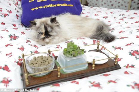 Parfumuri scumpe, haine si mâncare de calitate servită numai din boluri de cristal. Asta e viata de pisica! Si cu siguranță toate blănoasele din lume vor fi invidioase pe ea.Felina Dumpty Roo, din rasa Linx Himalayan, este răsfățată de stăpâna ei inca de cand a venit pe lume, in urma cu 13 ani.Carol Luke, în vârstă de 52 de ani, din Marea Britanie, i+a oferit totul pe tavă încă de când era mică și din această cauză a devenit foarte pretențioasă. Acum stăpâna cheltuiește saci de bani pe parfumuri de 130 de lire sterline sticluta.La fel ca o adevărată regină, Dumpty mănâncă numai mâncare de calitate și în niciun caz dintr-un bol de plastic, ci doar din setul ei de farfurii de cristal.