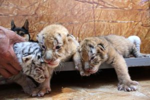 Cei patru pui s-au născut în urmă cu o săptămână la o rezervaţie din China. Doi dintre ei sunt dintr-o specie pe cale de dispariţie, Golden Tabby, iar ceilalţi doi sunt un tigru alb şi un tigru de zăpadă, notează People’s Daily Online.Angajaţii rezervației au fost nevoiţi să ia o decizie rapidă, au pus puii de tigru la pieptul unei căţelușe, pentru a-i hrăni, iar aceasta a aceptat să aibă grijă de ei, alături de cei doi căţelusi ai ei.