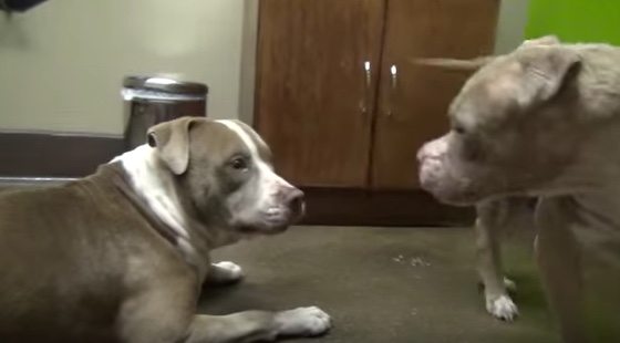 Întâlnirea unor Pitbulli salvați de pe străzile periculoase! Cei doi se pot bucura de o viață liniștită.