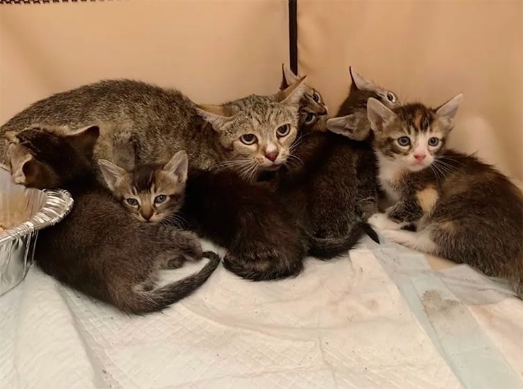 Cei de al Alley Cat Rescue au reuşit să captureze în siguranţă atât pe mama pisică, cât şi pe puii ei şi să-i mute într-o casă temporară. S-a descoperit caă mama îşi ţinuse ascunşi puii în primele patru săptămâni. Apoi i-a dus la femeia care avusese dintotdeauna grijă de ea.
