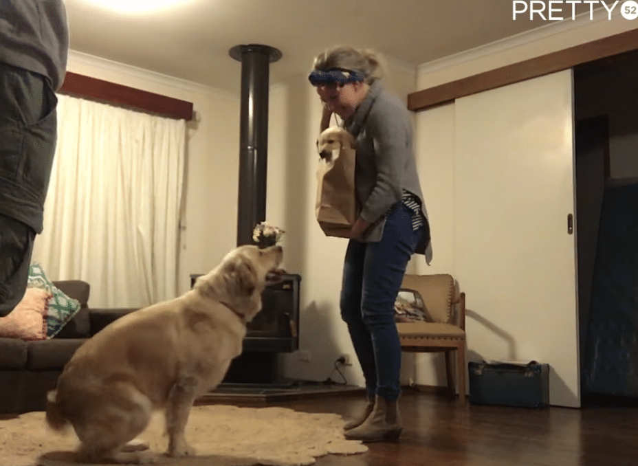 Stăpânii au decis să îi facă o surpriză cățelușei sale din rasa Golden Retriever!