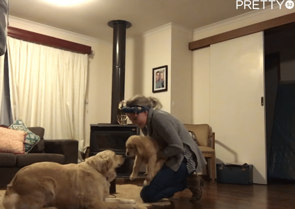 Reacția adorabilă a unui Golden Retriever atunci când vede un nou cățel în familie!