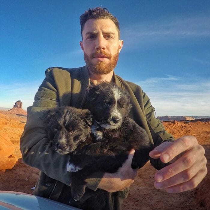 Salvați din deșert de un tânăr, doi câini îi devin cei mai buni prieteni!