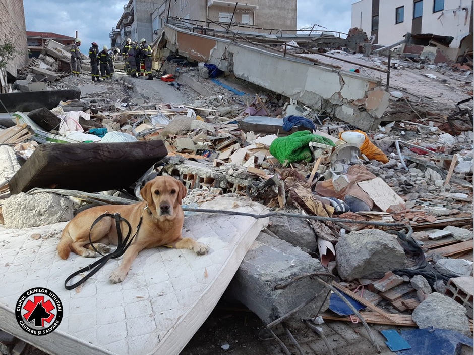 Challapa și Billy, câinii salvatori din România, caută victimele cutremurului din Albania