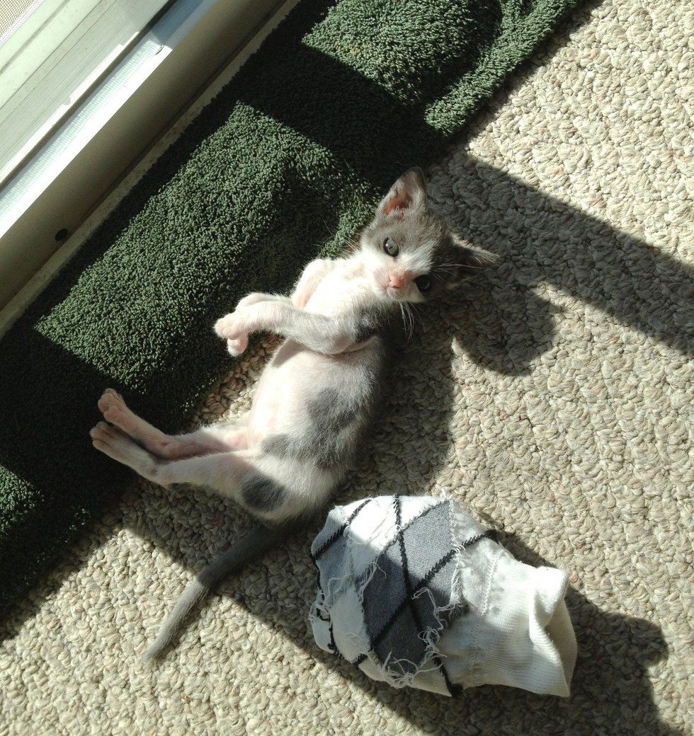 La scurt timp după venirea sa pe lume, „Baby” a fost abandonată. Din fericire, pisica a fost găsită de un bărbat inimos care i-a auzit mieunatul sfâşietor în curtea din spatele casei sale.