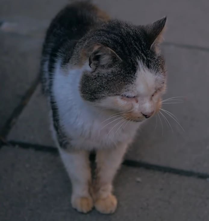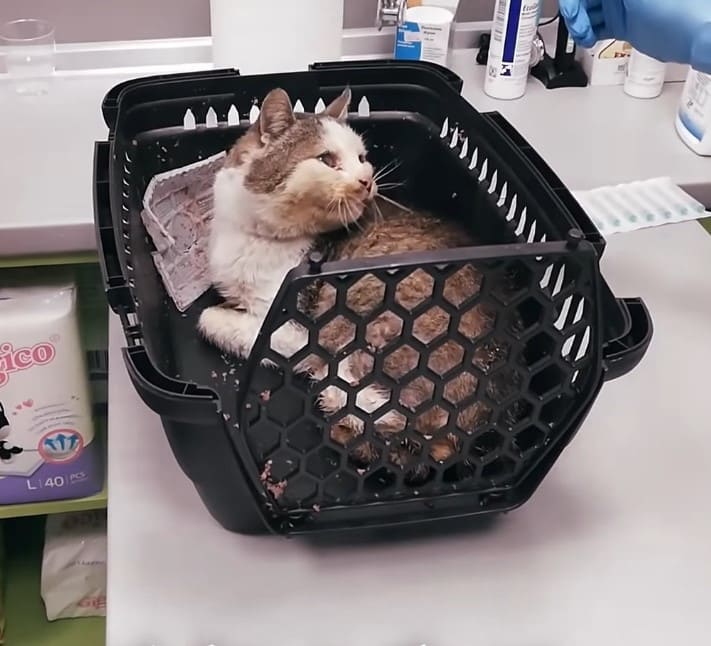 Un culcuș confortabil pentru o pisică bătrână care a trăit o viață pe stradă!