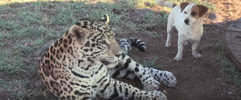 Videoclip uimitor cu prietenia dintre un jaguar și un cățel! Emoțiile îngrijitorilor au fost depășite cu succes.
